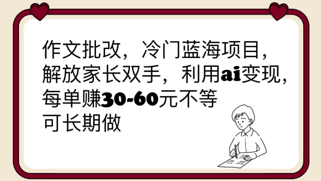 (6283期)作文批改,冷门蓝海项目,解放家长双手,利用ai变现,每单赚30-60元不等