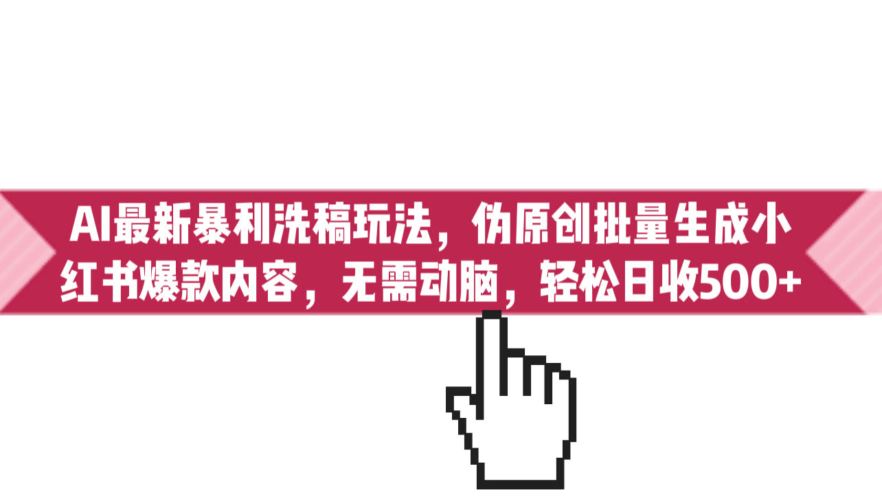 [热门给力项目] (6727期)AI最新暴利洗稿玩法,伪原创批量生成小红书爆款内容,无需动脑,日收500+ |