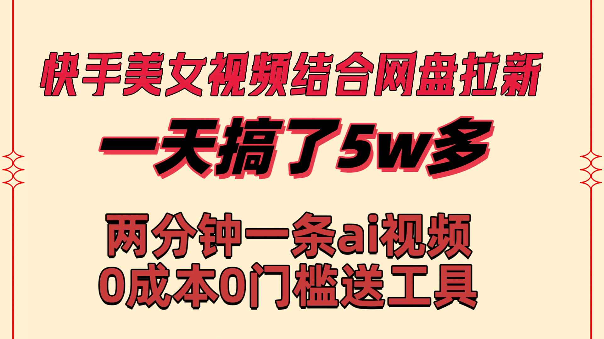 (8610期)快手美女视频结合网盘拉新,一天搞了50000 两分钟一条Ai原创视频,0成...