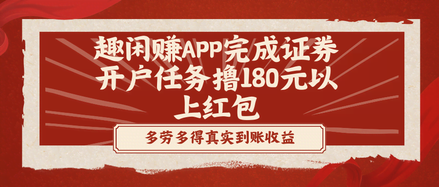 [热门给力项目] (8730期)趣闲赚APP完成证券开户任务撸180元以上红包 |