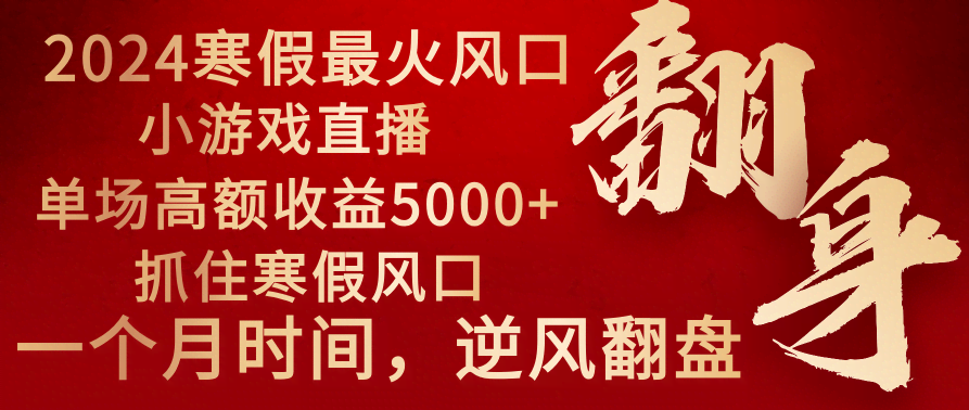 [热门给力项目] (8766期)2024年最火寒假风口项目 小游戏直播 单场收益5000+抓住风口 一个月直接提车 |