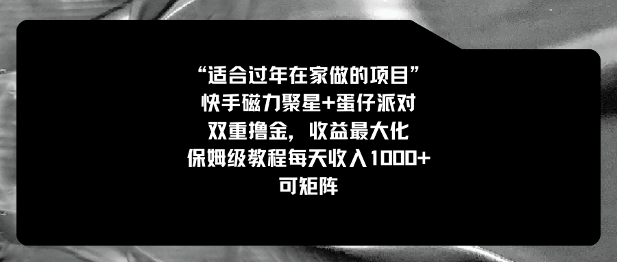 [热门给力项目] (8797期)适合过年在家做的项目,快手磁力+蛋仔派对,双重撸金,收益最大化 保姆... |