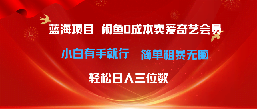 [热门给力项目] (10784期)最新蓝海项目咸鱼零成本卖爱奇艺会员小白有手就行 无脑操作轻松日入三位数 |