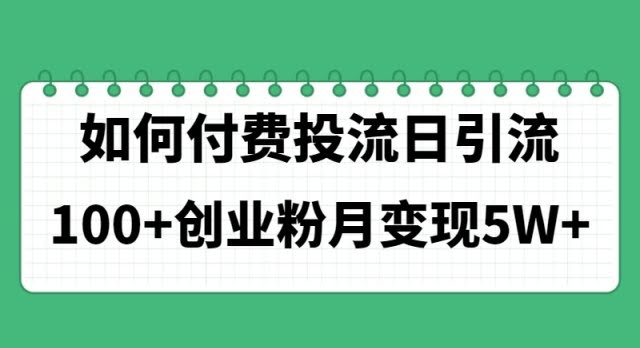 [创业项目] (11155期)如何通过付费投流日引流100+创业粉月变现5W+ |