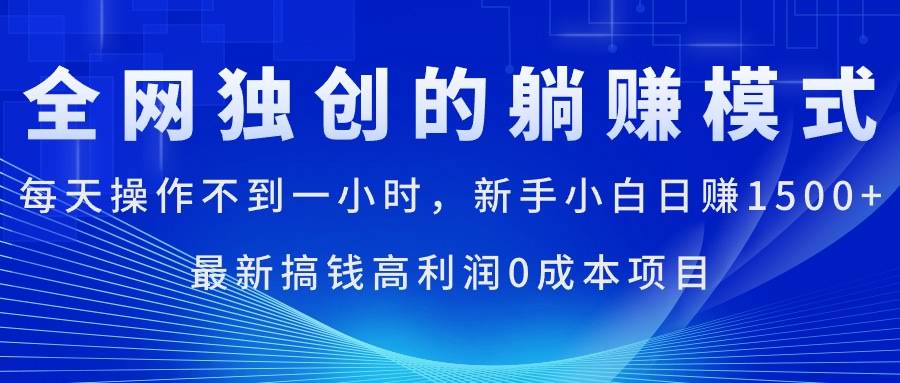 [无货源] (11307期)每天操作不到一小时,新手小白日赚1500+,最新搞钱高利润0成本项目 |