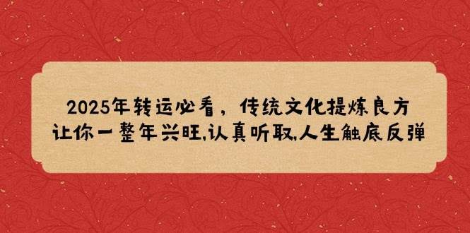 [投资理财] (14013期)2025年转运必看,传统文化提炼良方,让你一整年兴旺,认真听取,人生触底反弹 |