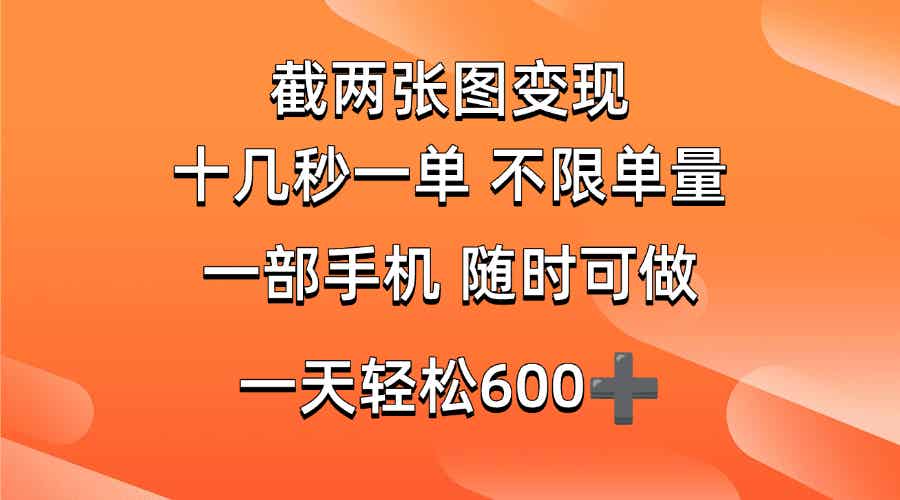 [热门给力项目] (14509期)两张截图0.7元,十几秒一单,不限单量,随时可做,一天600+ |