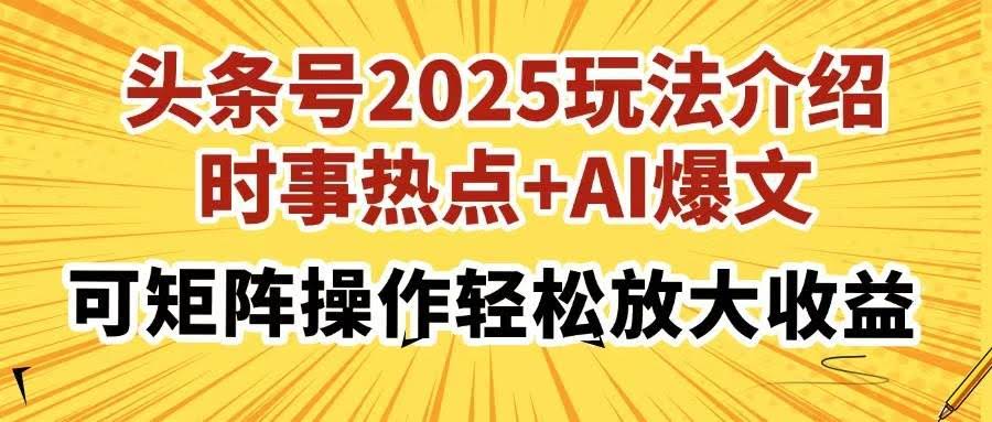 (14113期)头条号2025玩法介绍,时事热点+AI爆文,可矩阵操作轻松放大收益 |