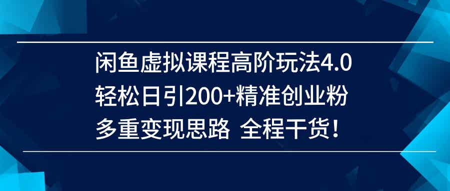[热门给力项目] (14153期)闲鱼虚拟课程高阶玩法4.0,轻松日引200+精准创业粉,多重变现思路全程... |