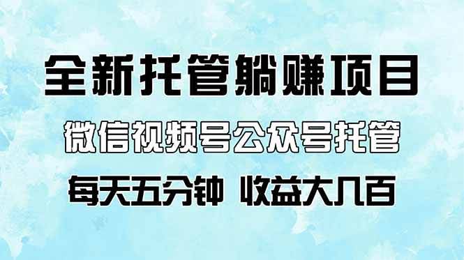 全新托管躺赚项目,微信视频号公众号托管代运营,每天五分钟,收益大几百
