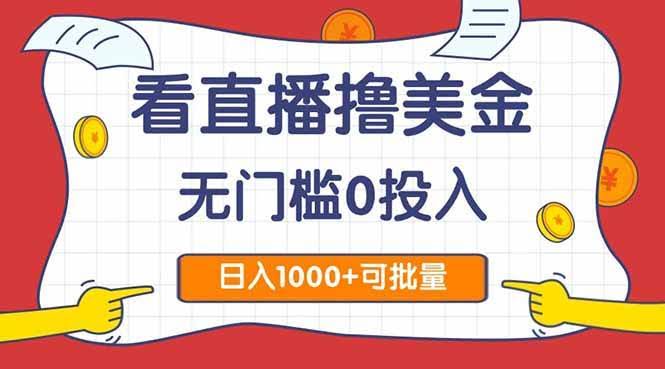 (14865期)看直播撸美金2.0,无门槛0投入,单日可达1000+,可批量复制